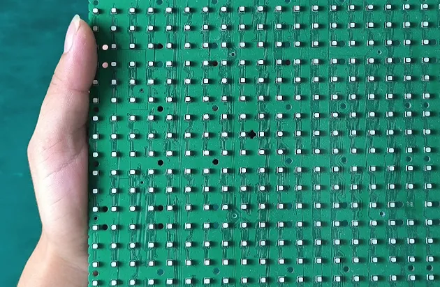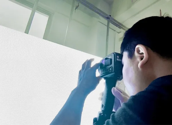 모듈에 조명을 비추어 빨간색, 녹색, 파란색, 흰색으로 디스플레이의 성능을 테스트하여 밝기와 정확도를 확인합니다.